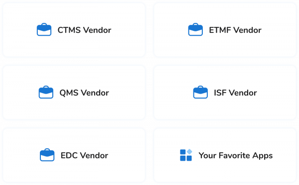 SureClinical offers the industry’s first and only suite of connected eClinical applications – including study start-up, ETMF, EISF, CTMS, ARCHIVE and more, all delivered on a modern collaboration platform. Have an application from another vendor? No problem. Our collaboration platform offers certified connectors to popular applications in clinical and other areas. With SureClinical, you can connect anywhere to gain a singular view of data.
