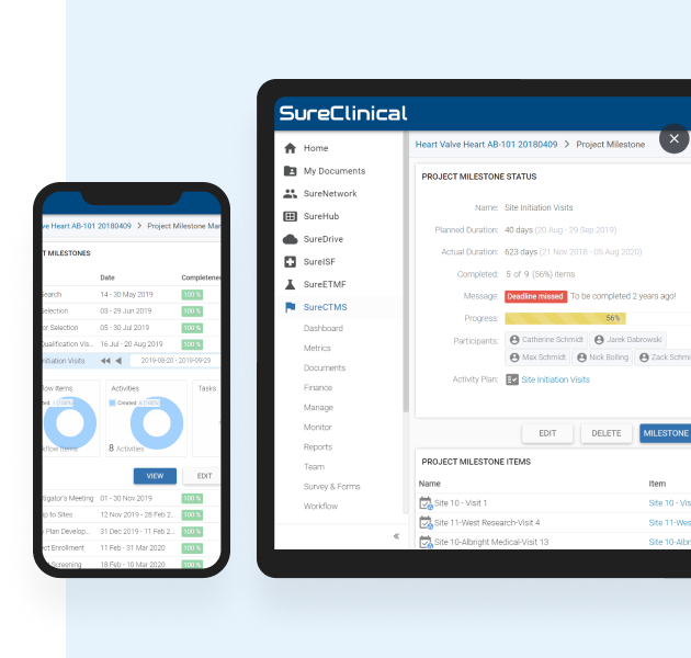 SureClinical offers the industry’s first and only suite of connected eClinical applications – including study start-up, ETMF, EISF, CTMS, ARCHIVE and more, all delivered on a modern collaboration platform. Have an application from another vendor? No problem. Our collaboration platform offers certified connectors to popular applications in clinical and other areas. With SureClinical, you can connect anywhere to gain a singular view of data.